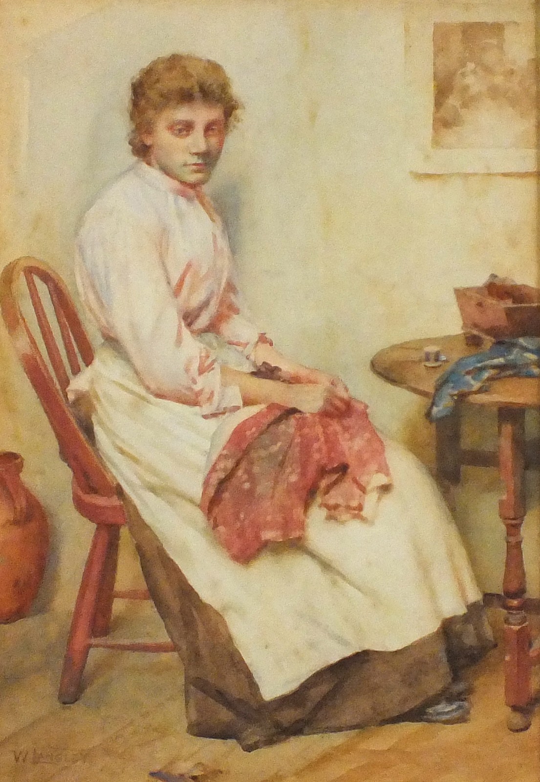 Walter Langley (1852-1922): Young Woman Sewing (Undated)
