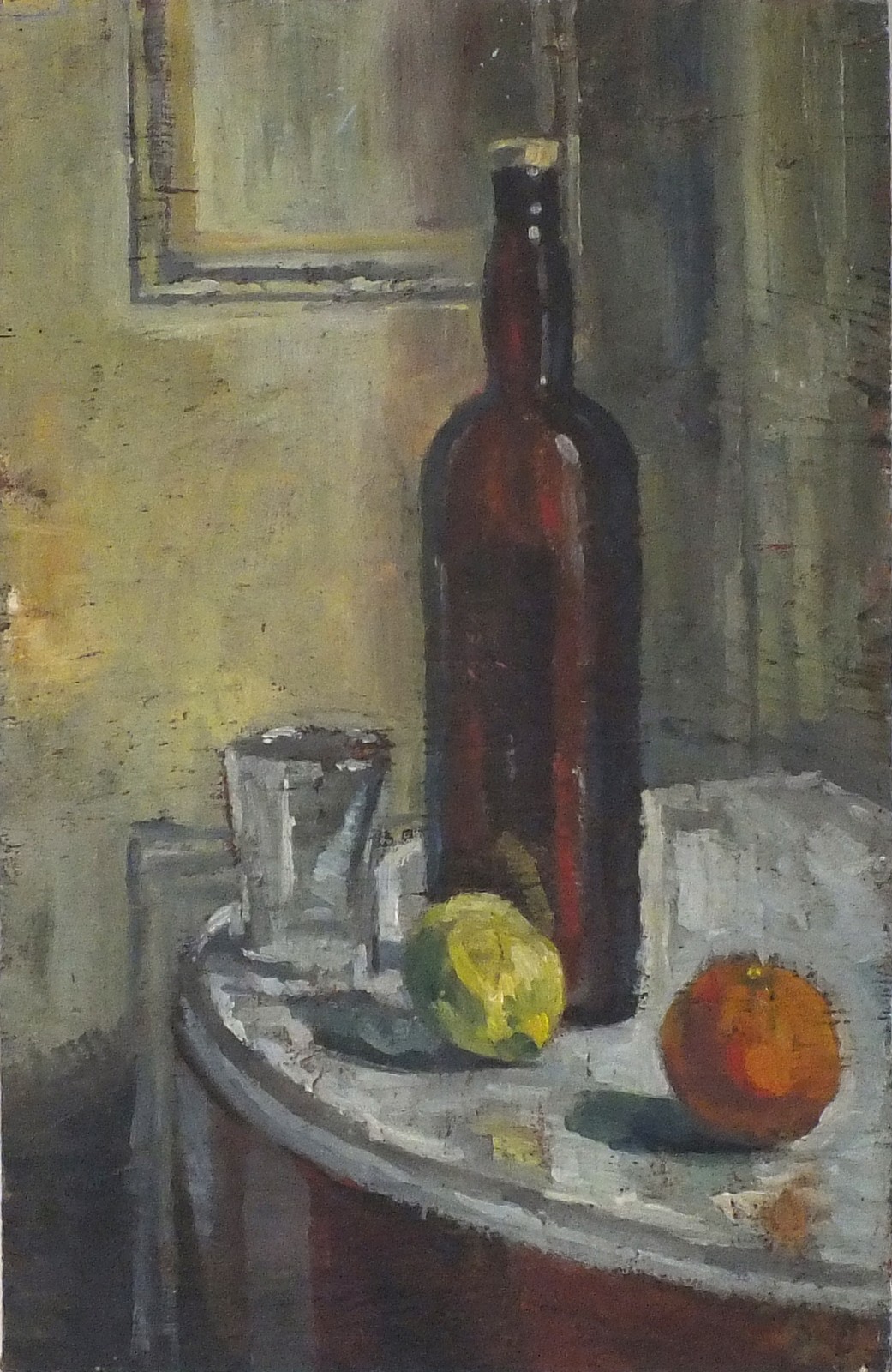 Jack Pender (1918-98): Still life with Bottle, Glass, Orange & Lime