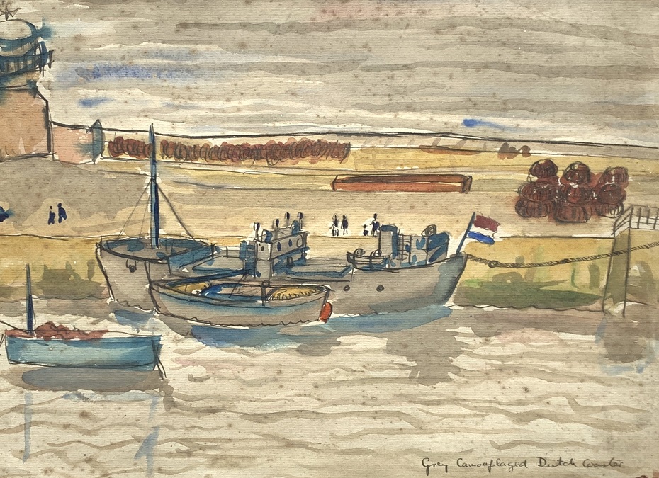 Charles Breaker (1906–85): Grey Camouflaged Dutch Coaster