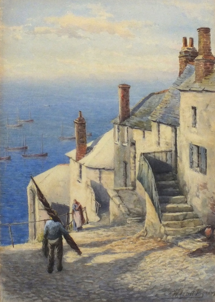 William Ayerst Ingham (1855-1913): Fisherman with Furled Sail above Newlyn Harbour (Undated)