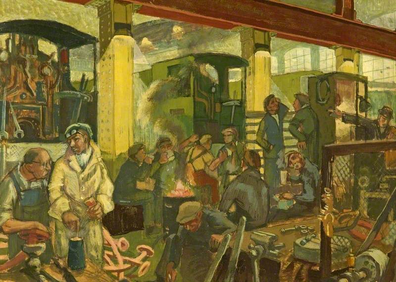 Ken Symonds (1927-2010): Scene in Great Western Railway Factory (1949). Swindon Museum and Art Gallery