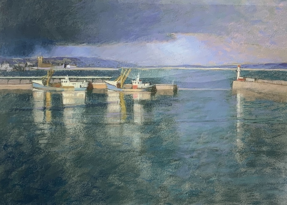 Ken Symonds (1927-2010): Distant Squall, Newlyn Harbour (Undated). Private collection