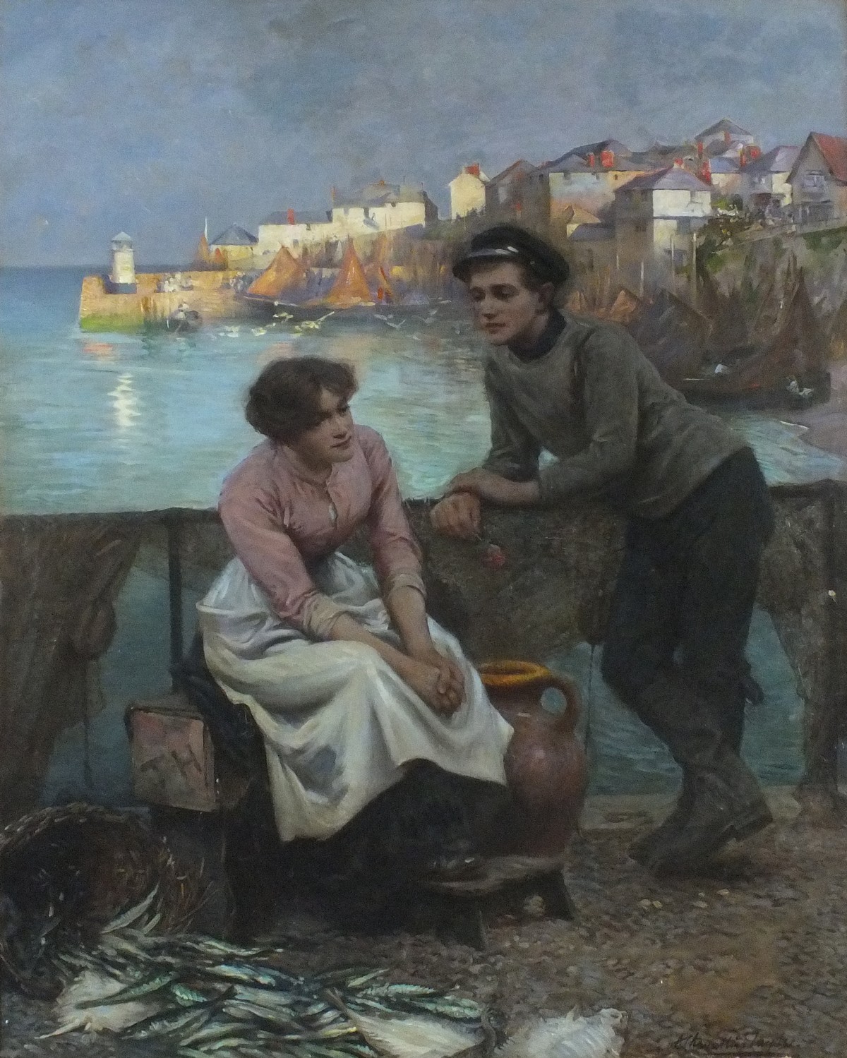 Albert Chevalier Tayler (1862-1925): Courting Couple on Newlyn Fish Quay (1887). Private collection
