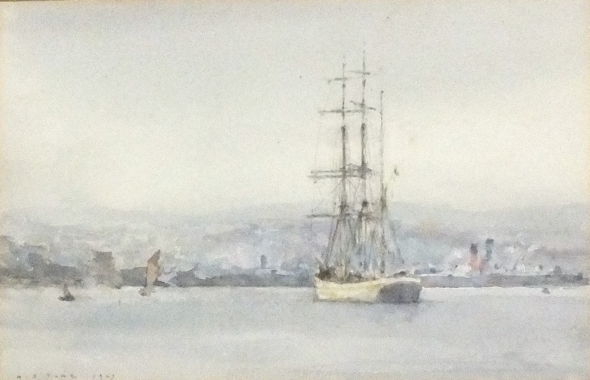 Henry Scott Tuke (1858-1929): Three Masted Vessel with Falmouth Beyond, Viewed from Carrick Roads