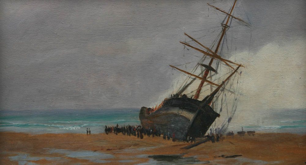 Frank Bodilly (1860-1926): Burning Ship. Penlee House