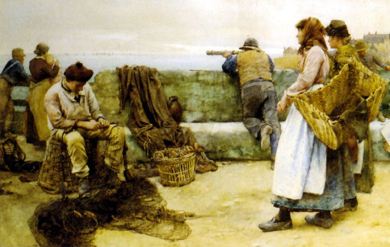 Walter Langley (1852-1922): In a Cornish Fishing Village - Departure of the Fleet for the North (1886). Penlee House, Penzance