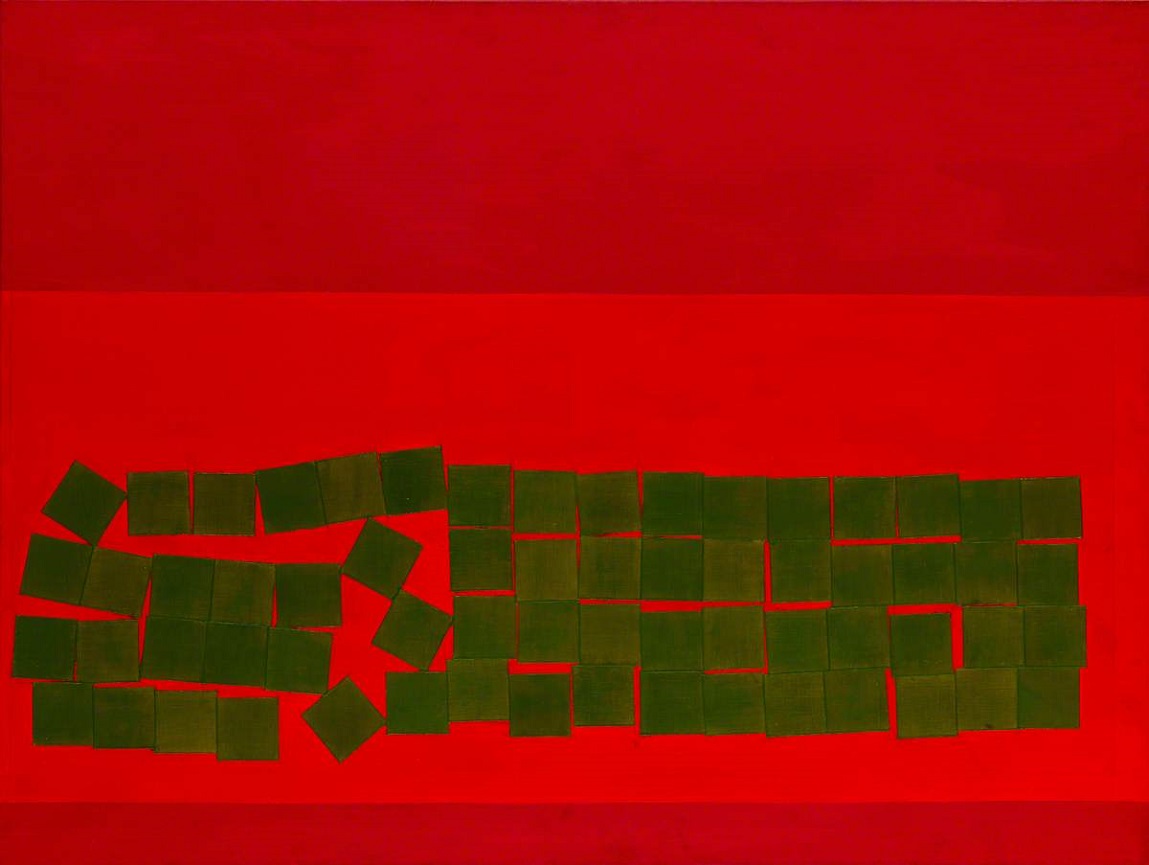Wilhelmina Barns-Graham (1912-2004): Olive Green Squares on Vermillion (1968). Wilhelmina Barns-Graham Trust