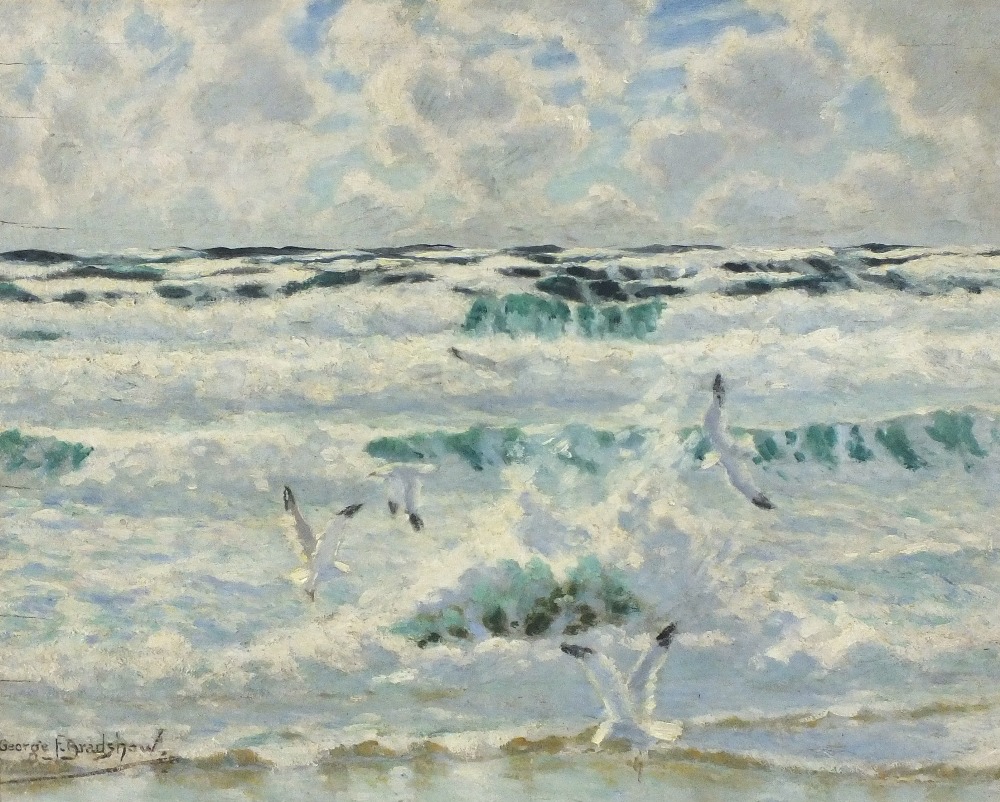George Fagan Bradshaw (1887-1960): Seagulls above breaking surf