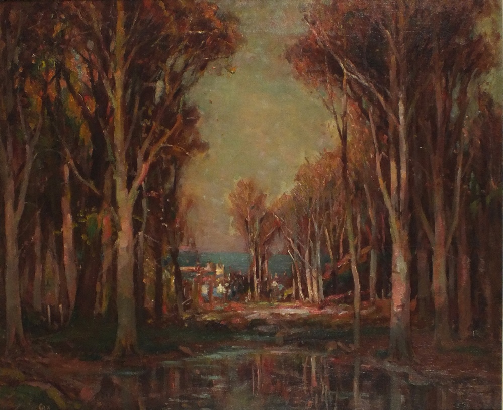 Garstin Cox (1892-1933): Distant view of Penzance through the Trees
