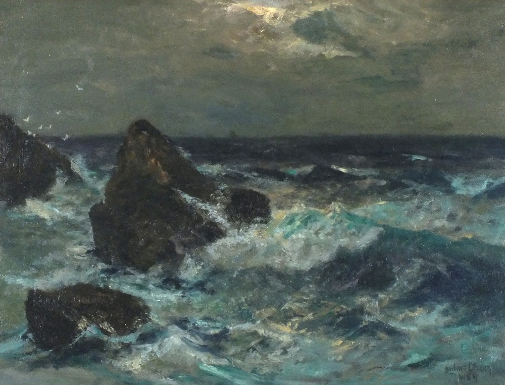 Julius Olsson (1868-1942): Moonlit Sea on Emerald Waves