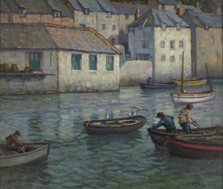 John Anthony Park (1878-1962): Polperro, Fishermen Tending to Their Vessels