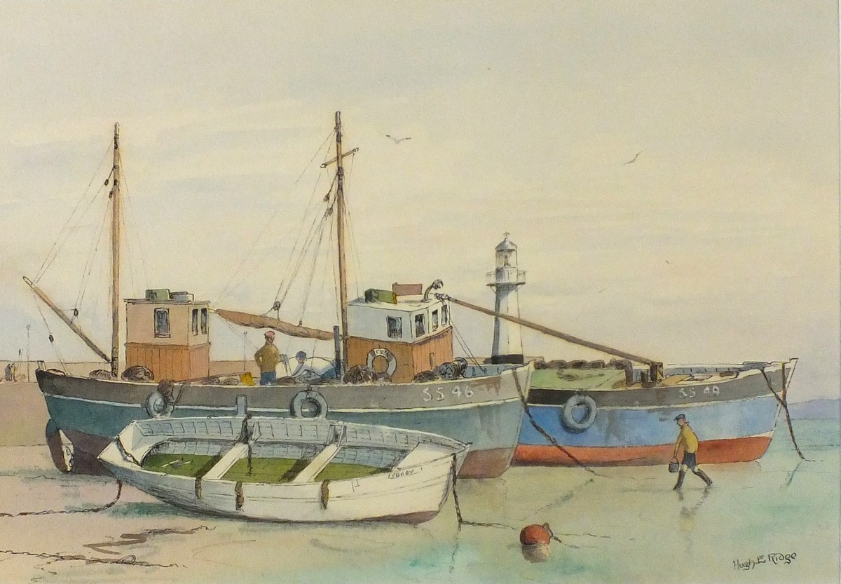 Hugh Ridge (1899-1976): Fishing Boats, St Ives - Low Tide
