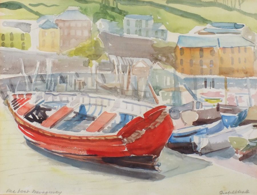 Isobel Heath (1909-89): Red Boat Mevagissey