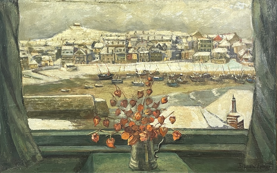 Eileen Izard (18xx-1957): Winter, St Ives Harbour Through the Window