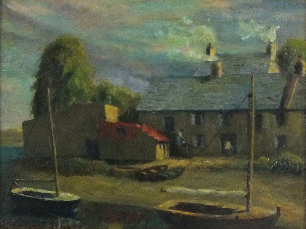 Robert Borlase Smart (1881-1947): Cottages with Boats off the Foreshore