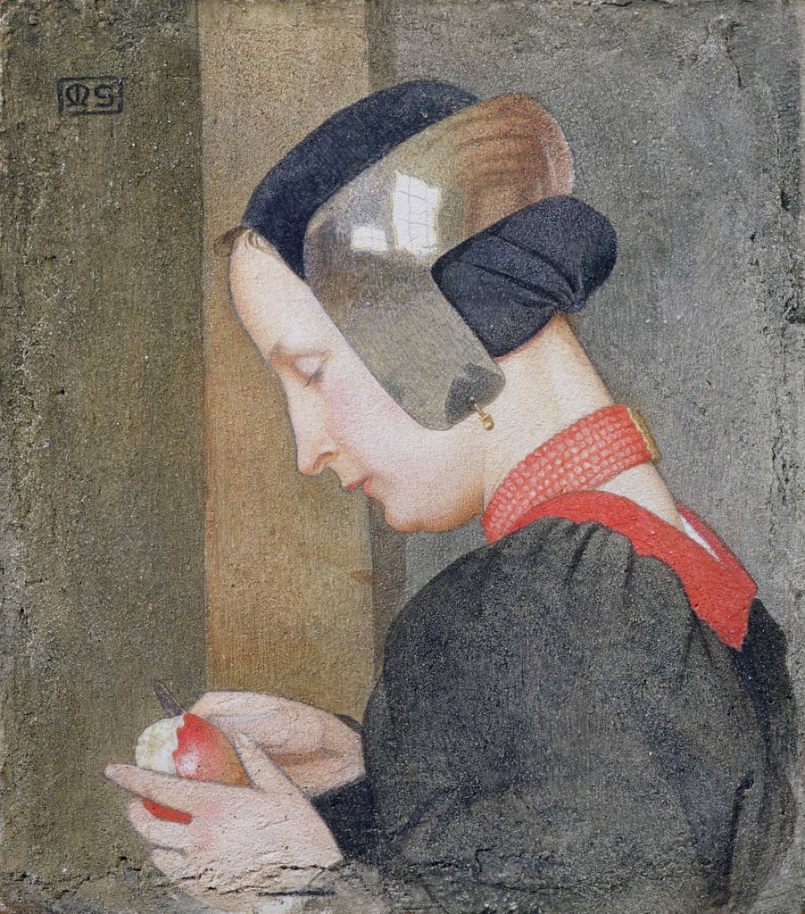 Marianne Stokes (1855-1927): Lady Peeling an Apple (Undated). Private collection