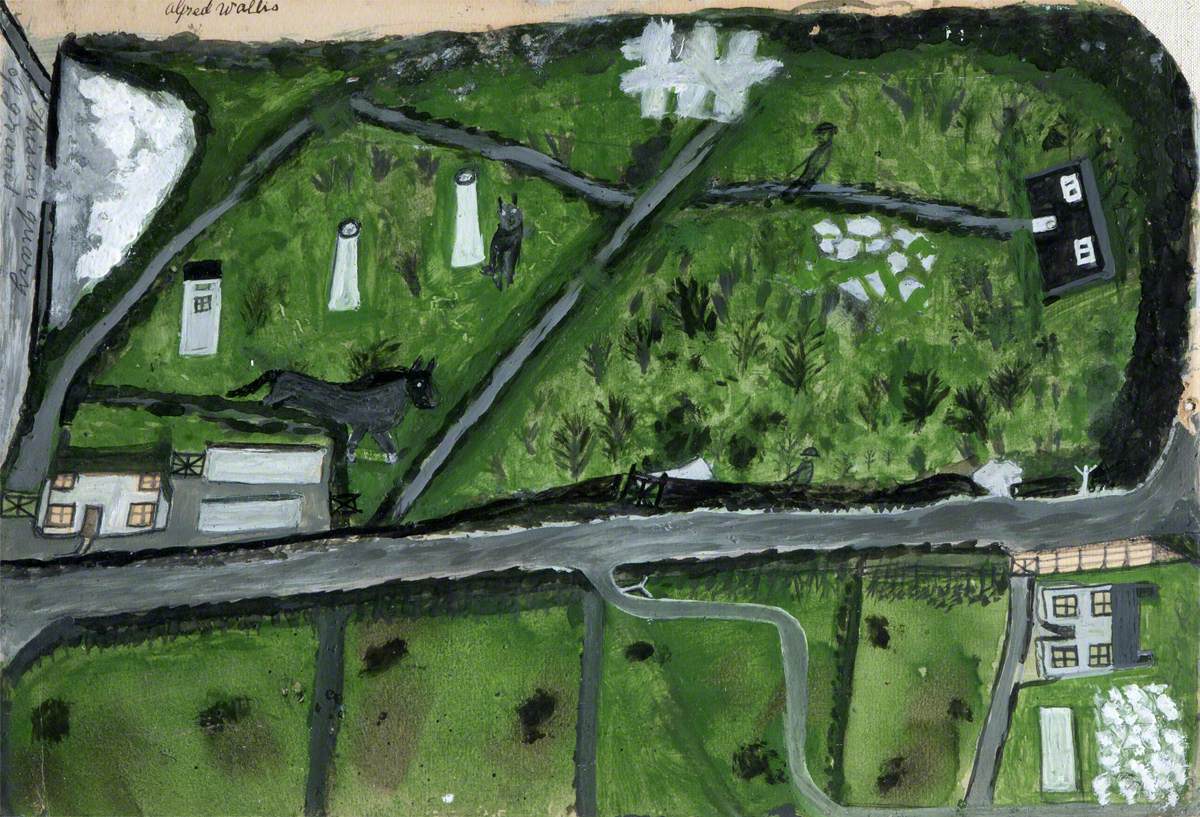 Alfred Wallis (1855-1942): 'Consols Mine Raswall Hill and the Road Zennor to Farms. The White You See Is Granite' (c.1936). Ulster Museum, Belfast