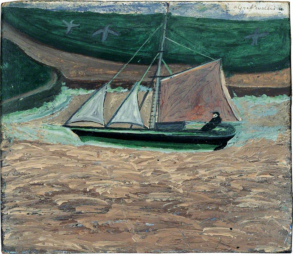 Alfred Wallis (1855-1942): Yacht, pink and green (c.1934-38). Pier Arts Centre, Stromness
