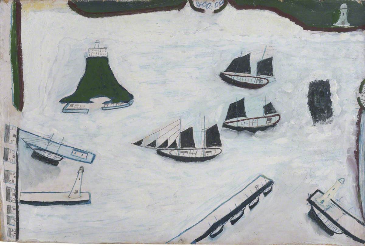 Alfred Wallis (1855-1942): Mounts Bay with Four Lighthouses (Date unknown). Kettle's Yard, Cambridge