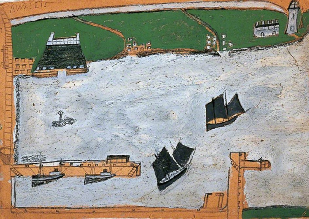Alfred Wallis (1855-1942): Mount's Bay with St Michael's Mount (Date unknown). Leeds Art Gallery