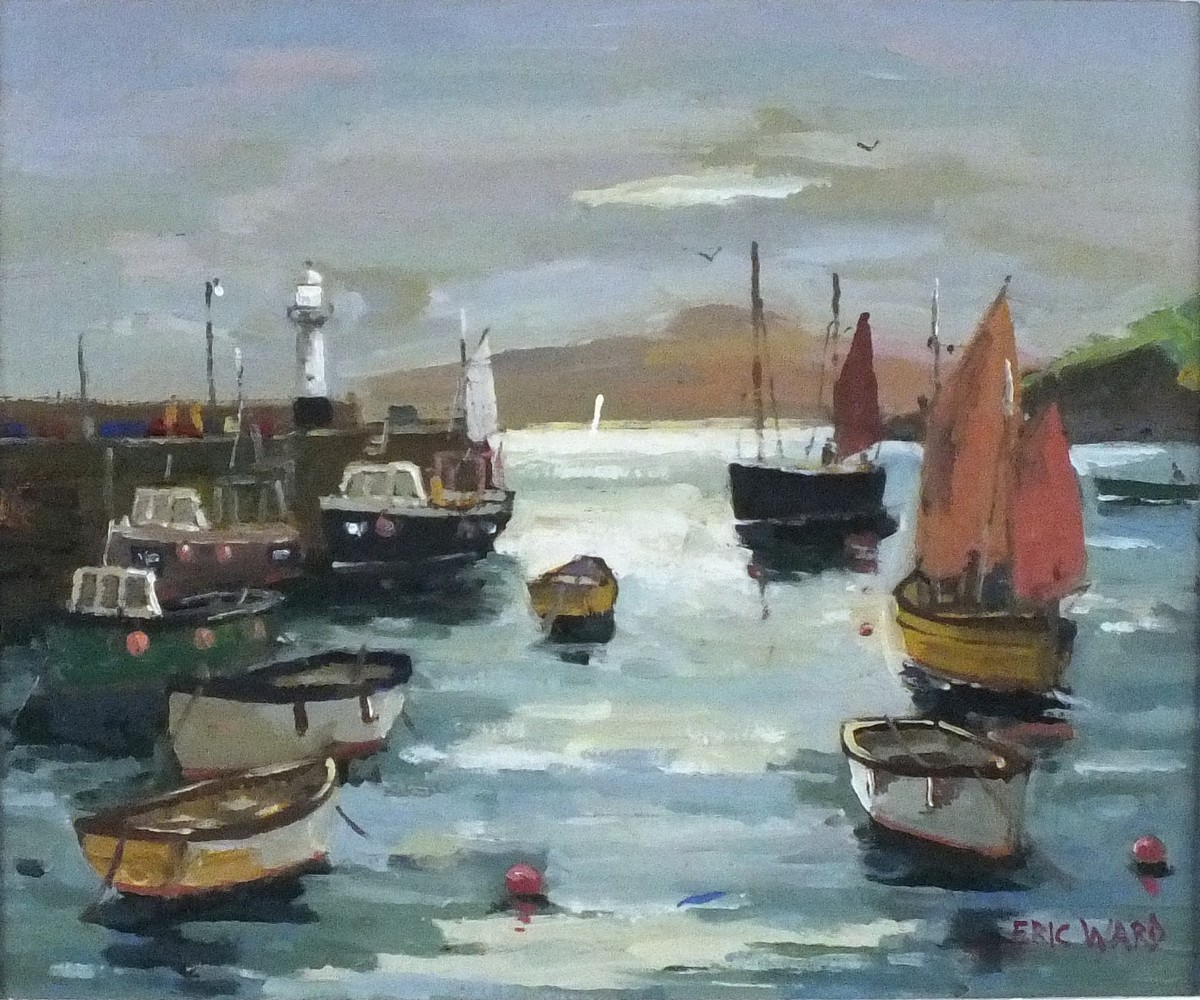 Eric Ward (1945-): Into the Sun: St Ives Harbour. Private collection