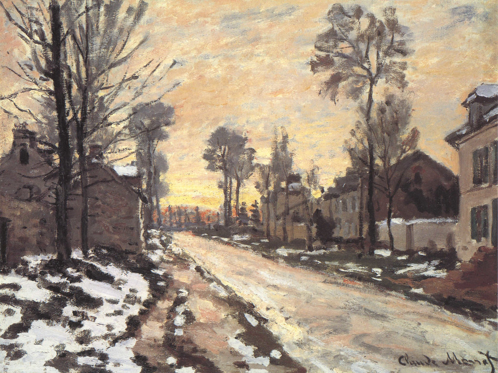 Claude Monet (1840-1926): Road at Louveciennes, Melting Snow, Sunset (1869). Private collection
