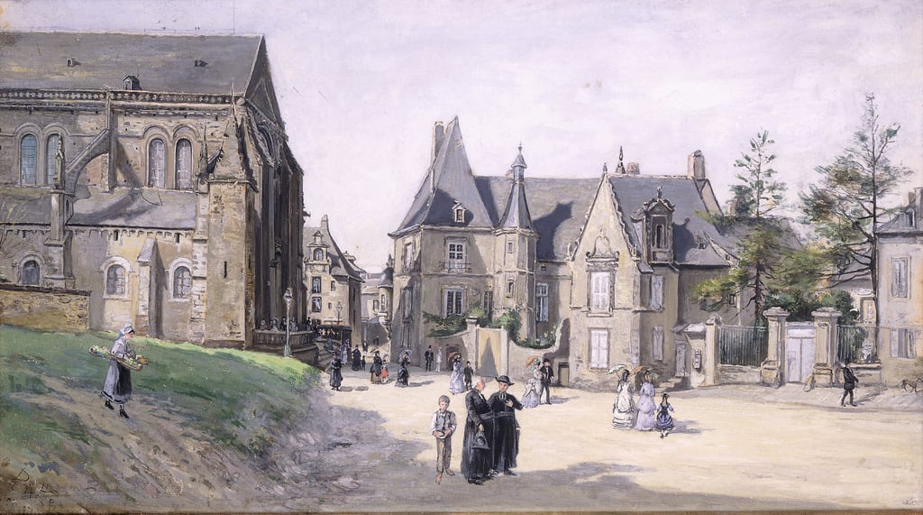 Ludovic Piette (1826-78): Landscape with Laundress (1870). Private collection