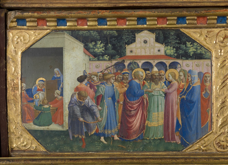 Fra Angelico (c.1395-1455): Birth and Marriage of Mary (Annunciation Altarpiece (1425-28). Museo del Prado, Madrid