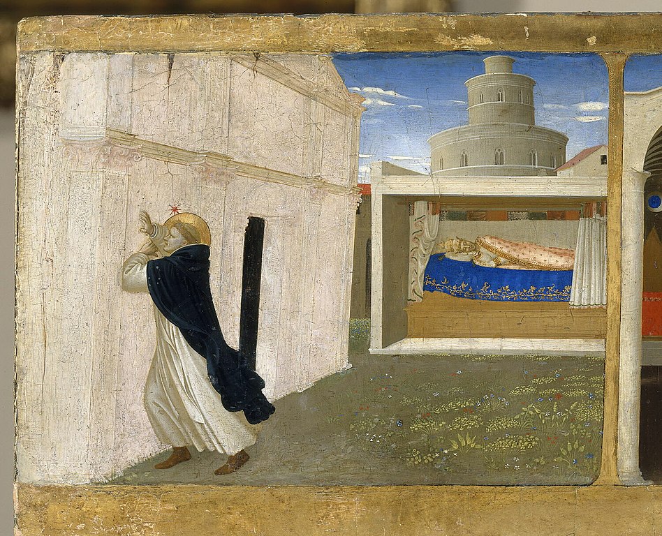 Fra Angelico (c.1395-1455): Life of St Dominic(5) (Coronation of the Virgin Altarpiece 1434-35). Musé du Louvre, Paris