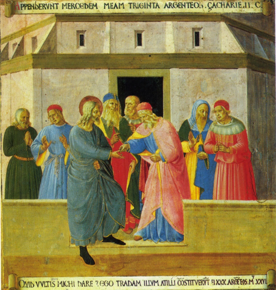Fra Angelico (c.1395-1455): Judas Receiving Thirty Pieces of Silver (Armadio degli Argenti sequence (c1450). Museo Nazionale di San Marco, Florence