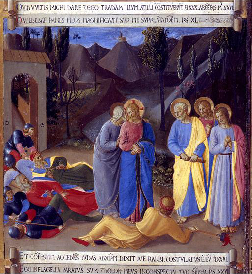 Fra Angelico (c.1395-1455): Judas Betrays Jesus with a Kiss (Armadio degli Argenti sequence (c1450). Museo Nazionale di San Marco, Florence