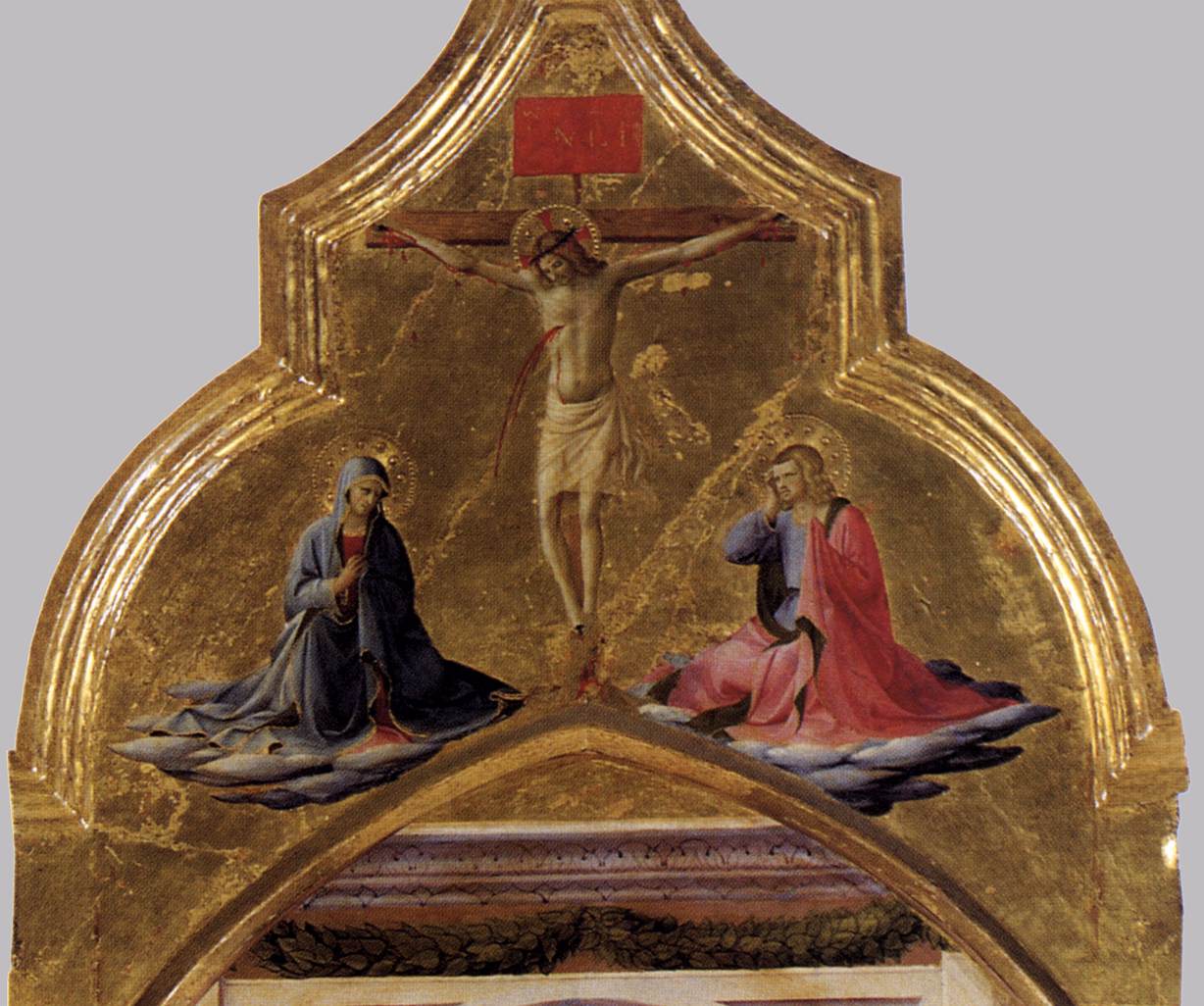 Fra Angelico (c.1395-1455): The Crucified Christ with the Virgin and St John the Evangelist (Cortona Altarpiece c.1437). Diocesan Museum, Cortona