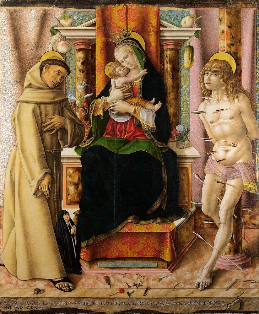 Carlo Crivelli (c.1430-95): Madonna and Child with St Francis and St Sebastian. National Gallery