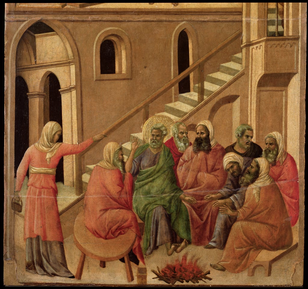 Duccio di Boninsegna (c. 1255–1260–c. 1318–1319): Peter's Denial (1308-11). Museo dell'Opera Metropolitana del Duomo, Siena
