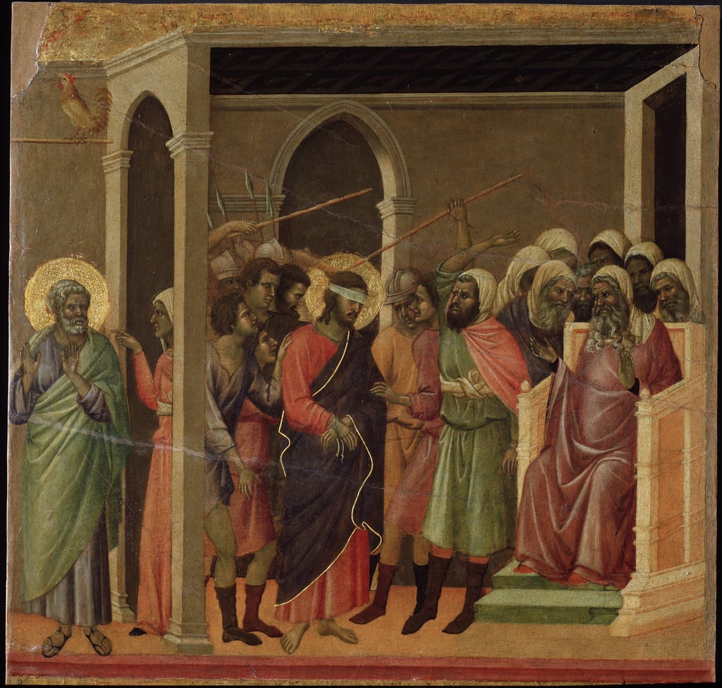 Duccio di Boninsegna (c. 1255–1260–c. 1318–1319): Jesus Scorned (1308-11). Museo dell'Opera Metropolitana del Duomo, Siena