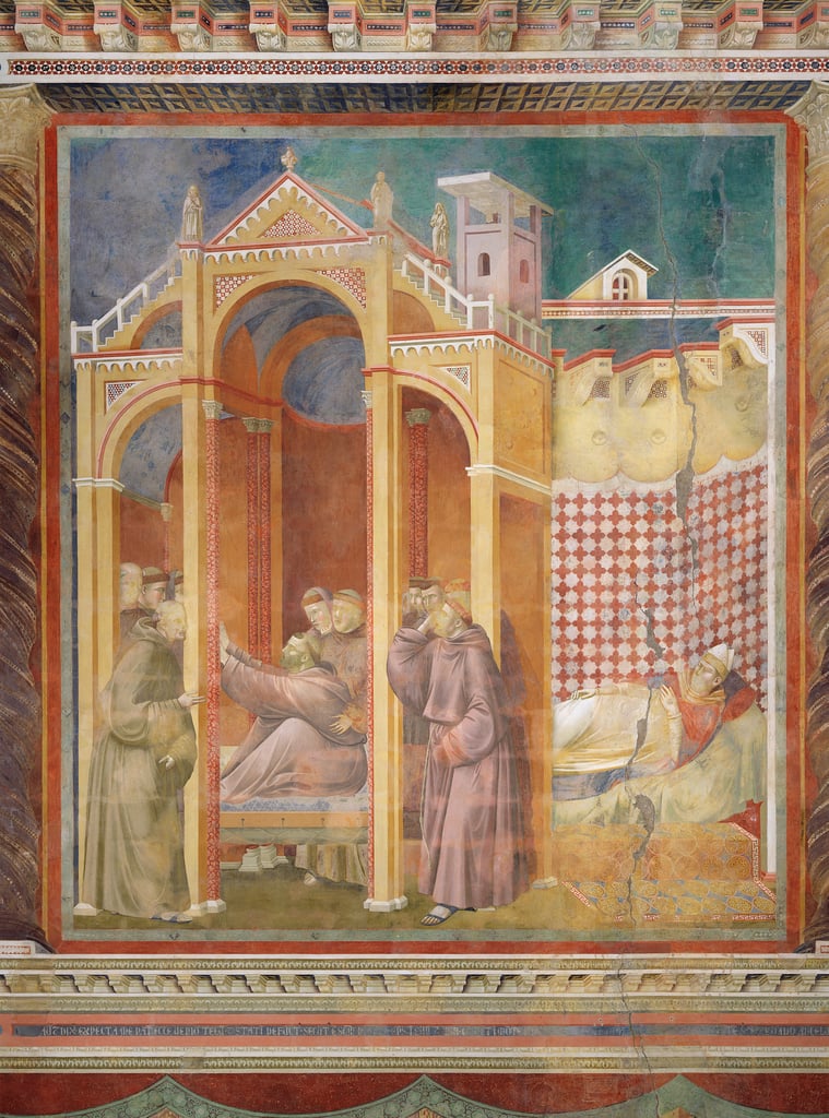 Giotto di Bondone (1266?-1337): The Vision of Brother Agostino and the Bishop of Assisi (1297-99). Basiilca di San Francesco, Assisi