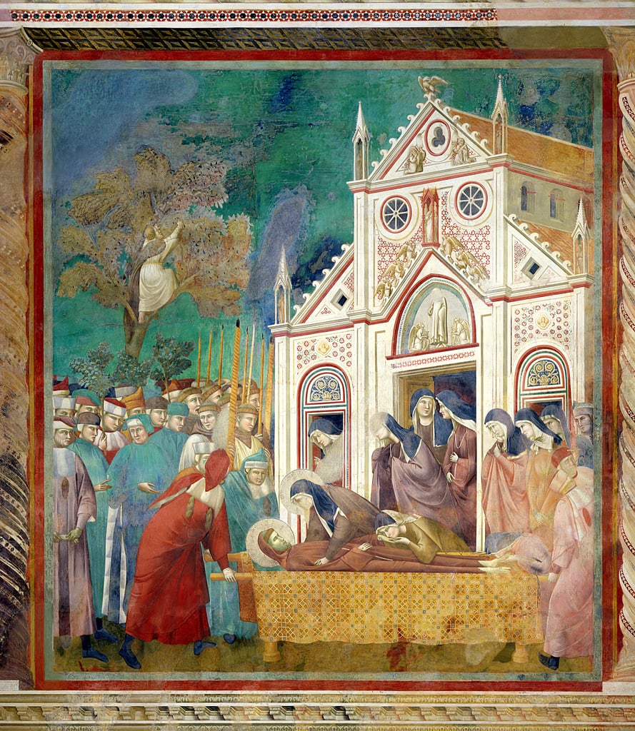 Giotto di Bondone (1266?-1337): St Clare Embraces the Body of St Francis at the Convent of San Damiano (1297-99). Basiilca di San Francesco, Assisi
