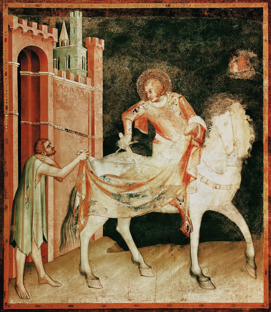 Simone Martini (1284-1344): St Martin Shares his Cloak with a Beggar (The Life of St Martin 1317-19). Basilica San Francesco, Assisi