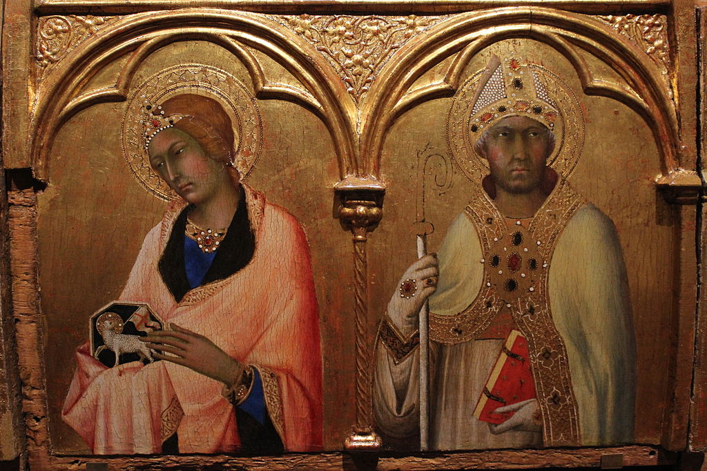 Simone Martini (1284-1344): St Agnes and St Ambrose (St Catherine of Alexandria Polyptych 1320). Museo Nazionale di San Matteo, Pisa