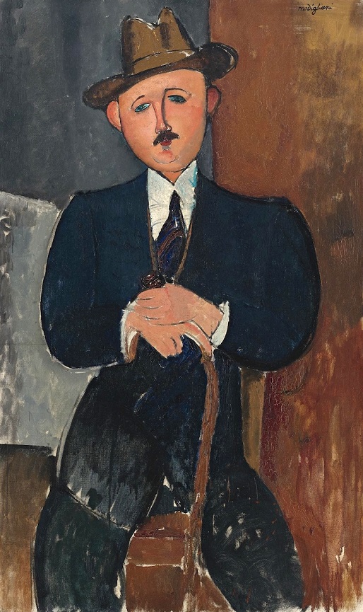 Amedeo Modigliani (1884-1920): Seated Man Leaning on a Cane (1918). Private collection