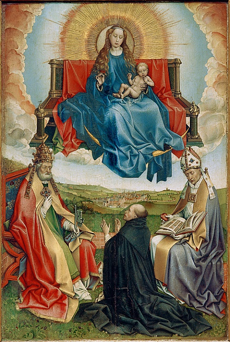 Robert Campin (c.1375-1444): Madonna in Glory with Founder and St. Peter and Augustine. Unknown location