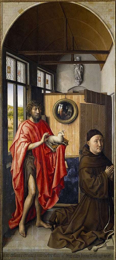 Robert Campin (c.1375-1444): John the Baptist and the Franciscan Heinrich von Werl (Werl Triptych 1438). Museo del Prado, Madrid