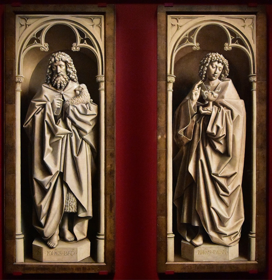 Jan van Eyck (c.1390-1441): John the Baptist and John the Evangelist (Ghent Altarpiece (1420-32). St Bavo's Cathedral, Ghent