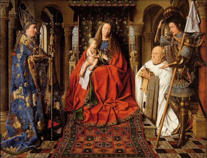 Jan van Eyck (c.1390-1441): Madonna and Child with Canon van der Paele (c.1436). Groeningemuseum, Bruges