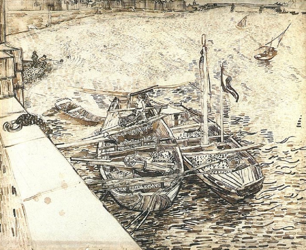 Vincent van Gogh (1853-1890): Quay with Men Unloading Sand Barges (1888). Cooper-Hewitt Smithsonian Design Museum, New York