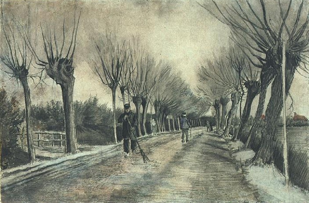 Vincent van Gogh (1853-1890): Road with Pollard Willows and Man with Broom (1881). Metropolitan Museum of Art, New York