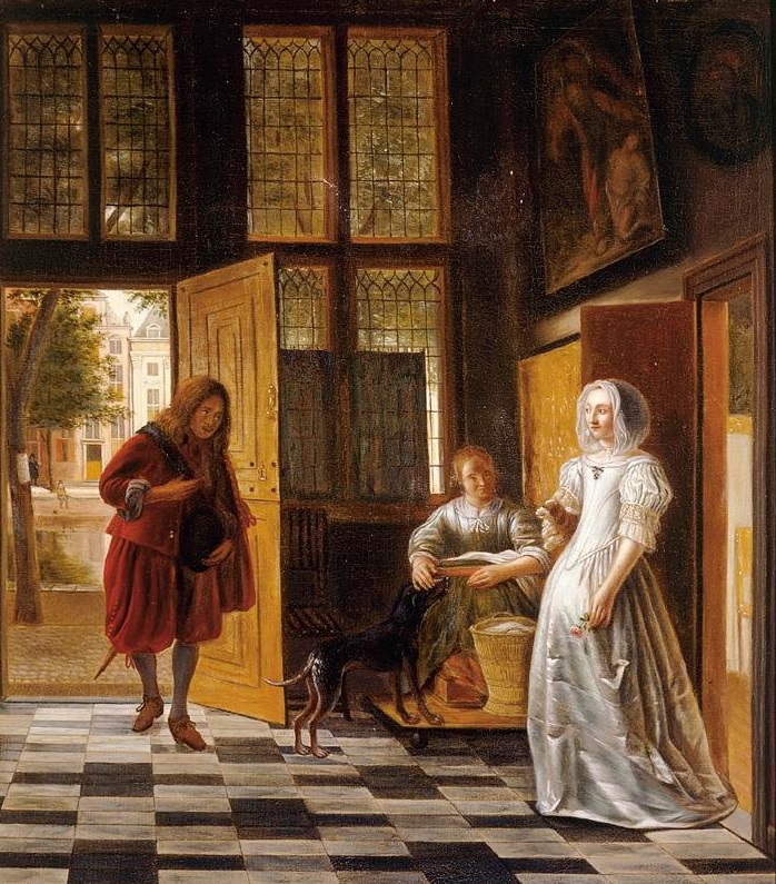 Pieter de Hooch (1629-1684): A Woman Receiving a Man in the Doorway (1669). Private collection