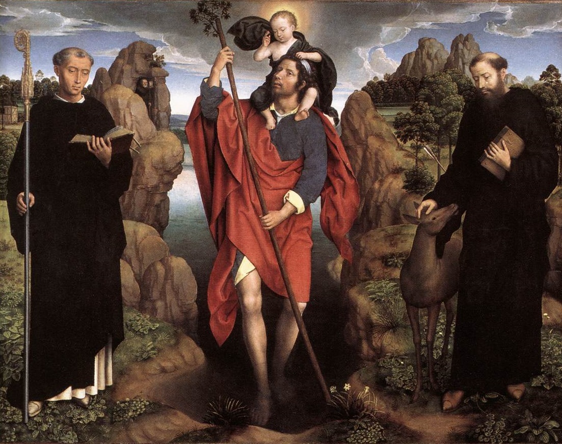 Hans Memling (1430-1494): St Christopher, St Maurus and St Giles (Triptych of the Family Moreel 1484). Groeningemuseum, Bruges