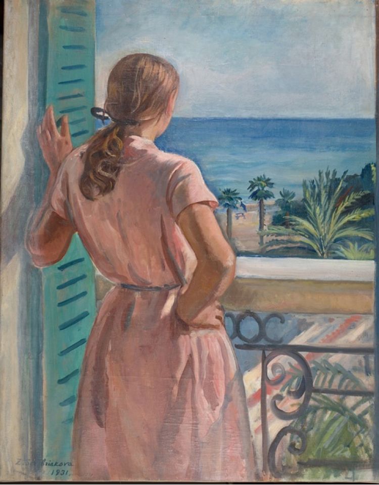 Zinaida Yevgenivna Serebryakova (1884-1967): Katya on the Balcony (1931). Unknown location