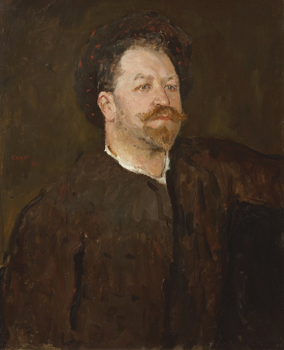 The Italian singer Francesco Tamagno (1851–1905) often toured in Russia, performing primarily at the Bolshoi Theater and the Italian Opera in St. Petersburg. In 1891, he performed the part of Othello in the eponymous opera by G. Verdi on the stage of the Russian Private Opera in Moscow. For his portrait, Serov turns to theatrical stylisation, to a dialogue with the old masters – Titian, Rembrandt – which will be further developed in the painter’s art. The model’s headgear and warm Titian colours bring to mind Venetian culture. The non finito (unfinished) pictorial technique used by Serov for the figure emphasises the expressiveness of a carefully modelled face. The hand gesture is cut off by the frame edge, allowing the viewer to shift attention from the external motion to the motion of the soul. Serov achieves a special expressiveness in the model’s passionate faraway gaze. For that end, he slightly lowered the outer corners of the eyelids and, on the contrary, raised the singer’s eyebrows. Satisfied with the way the effect of a luminous face turned out in the portrait, Serov asked K.A. Korovin: “Do you feel that this person has a golden voice?”